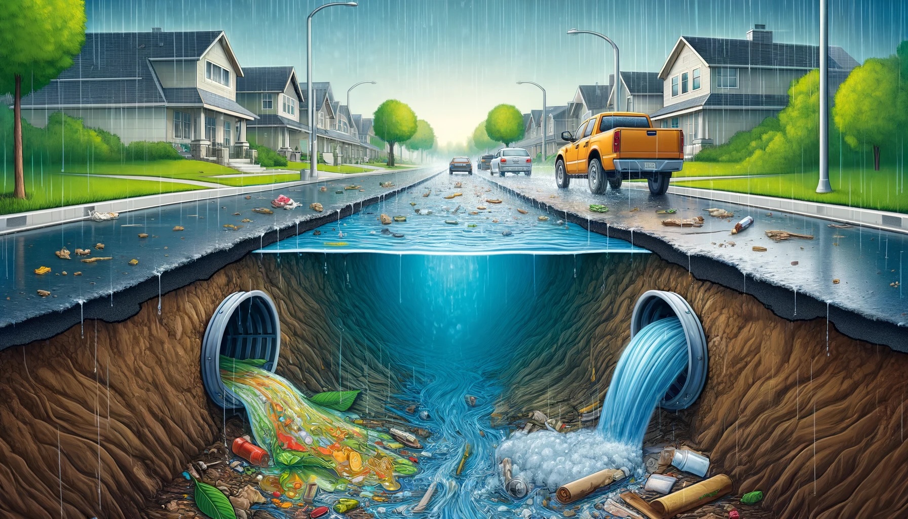 When it rains, pollutants are washed into storm drains and eventually reach our water sources. To prevent this, it's crucial to properly dispose of trash, leaves, debris, pet waste, and motor oil in the garbage.